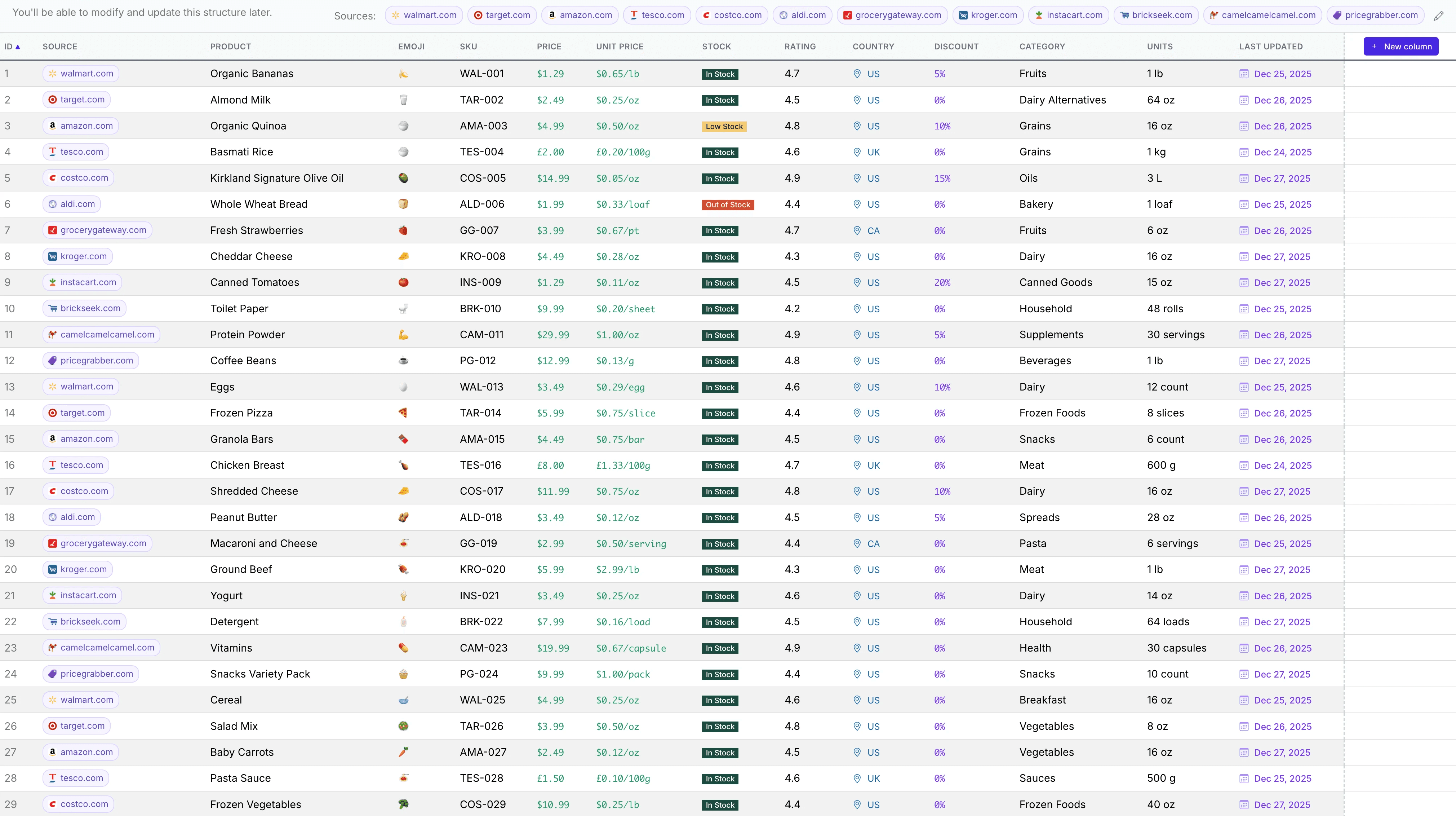 Worldwide supermarket, retailer, and ecommerce listing scans