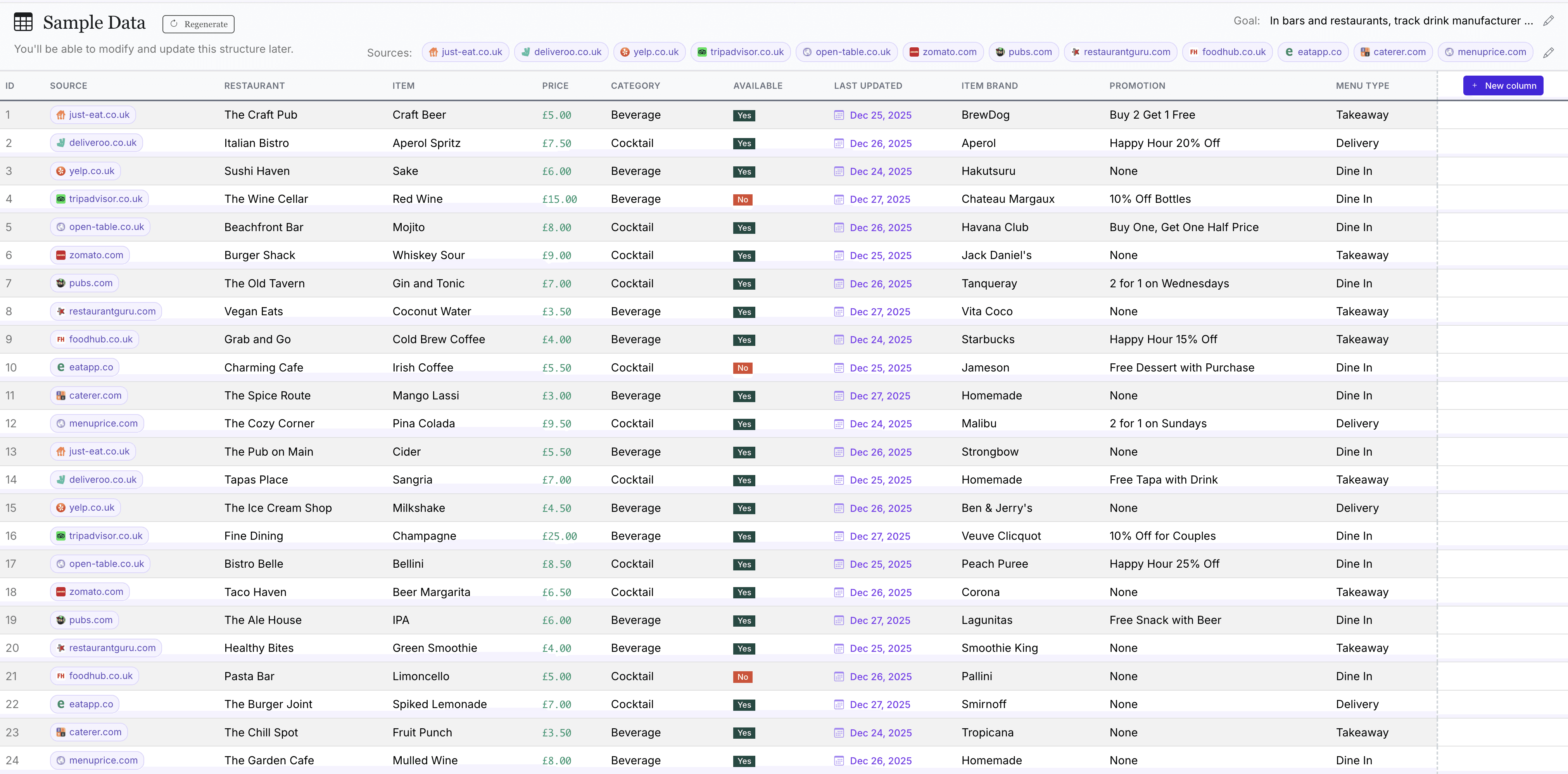 Radar shows where your products and competitors appear, how they’re priced, and what’s changing across menus, venues, marketplaces, and digital shelves.