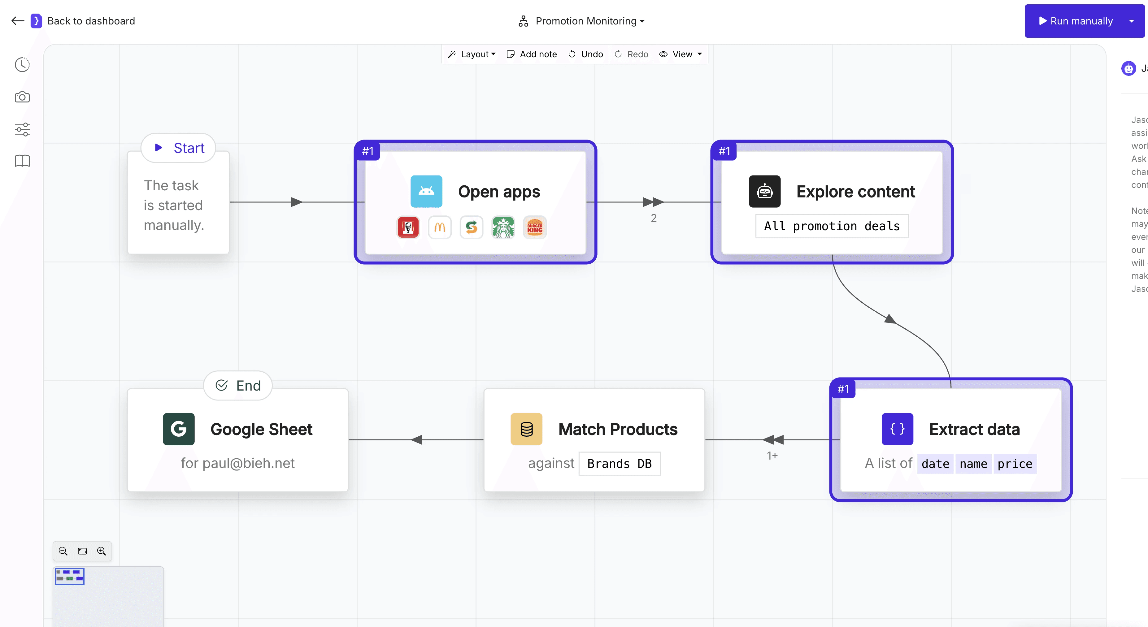 Jsonify’s AI agents autonomously explore the public web and mobile apps — menus, retailers, marketplaces, reviews, regulatory portals — and extract the exact data your team needs across any market or category.